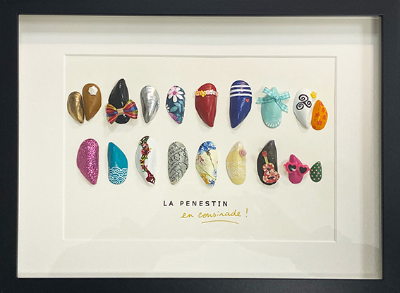 Acrylique/ papiers collés/accessoires tissu et résine